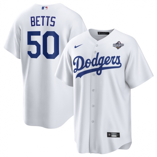 Men's Los Angeles Dodgers #50 Mookie Betts Nike White 2024 World Series Home Replica Player Jersey