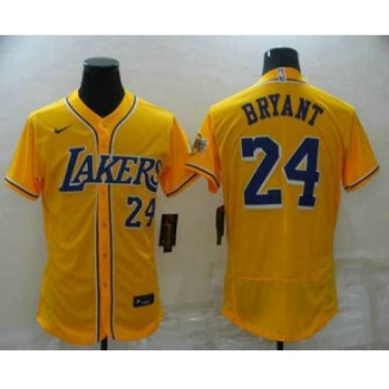 Men's Los Angeles Lakers #24 Kobe Bryant Number Yellow Cool Base Stitched Baseball Jersey