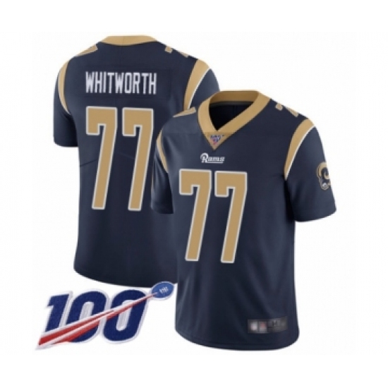 Men's Los Angeles Rams #77 Andrew Whitworth Navy Blue Team Color Vapor Untouchable Limited Player 100th Season Football Jersey