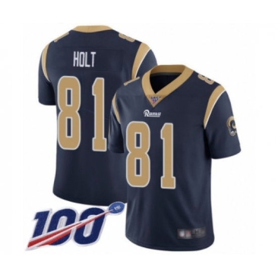 Men's Los Angeles Rams #81 Torry Holt Navy Blue Team Color Vapor Untouchable Limited Player 100th Season Football Jersey