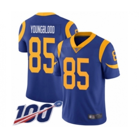 >Men's Los Angeles Rams #85 Jack Youngblood Royal Blue Alternate Vapor Untouchable Limited Player 100th Season Football Jersey