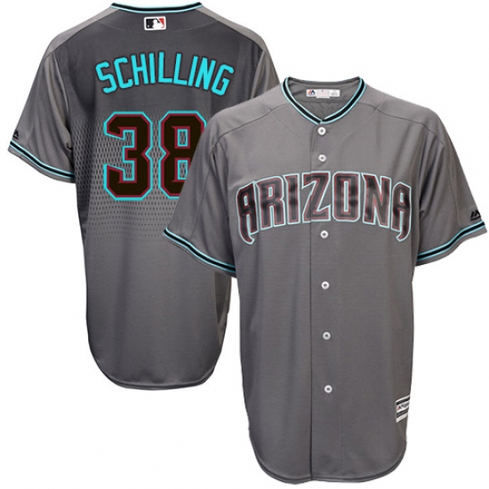 Home>MLB>Arizona Diamondbacks>Curt Schilling>Men's Majestic Arizona Diamondbacks #38 Curt Schilling Authentic Gray/Turquoise Cool Base MLB Jersey