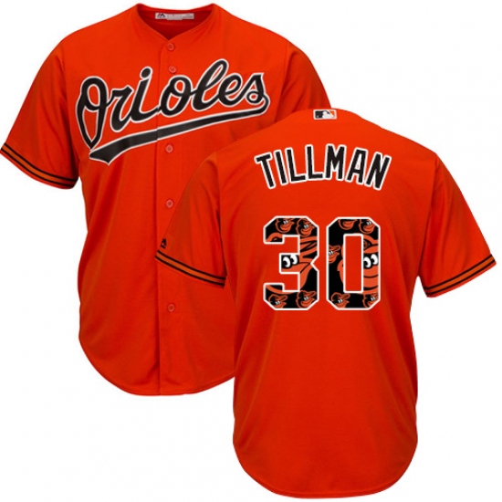 Home>MLB>Baltimore Orioles>Chris Tillman>Men's Majestic Baltimore Orioles #30 Chris Tillman Authentic Orange Team Logo Fashion Cool Base MLB Jersey