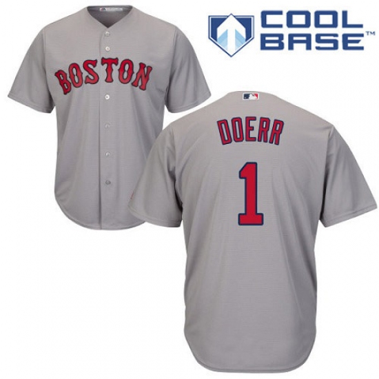 Home>MLB>Boston Red Sox>Bobby Doerr>Men's Majestic Boston Red Sox #1 Bobby Doerr Replica Grey Road Cool Base MLB Jersey