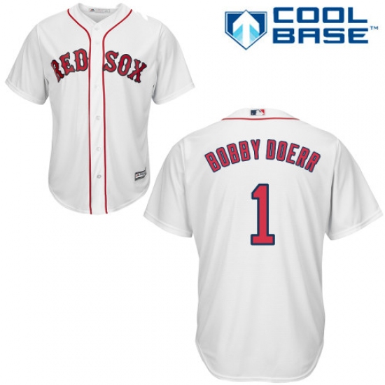 Men's Majestic Boston Red Sox #1 Bobby Doerr Replica White Home Cool Base MLB Jersey