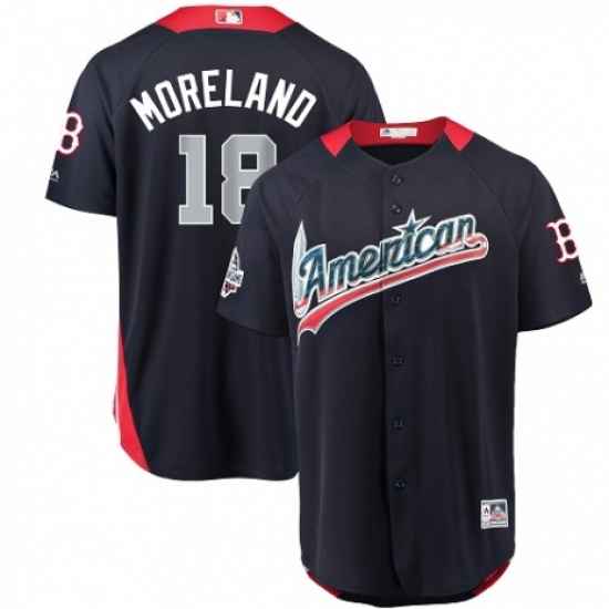 >Men's Majestic Boston Red Sox #18 Mitch Moreland Game Navy Blue American League 2018 MLB All-Star MLB Jersey