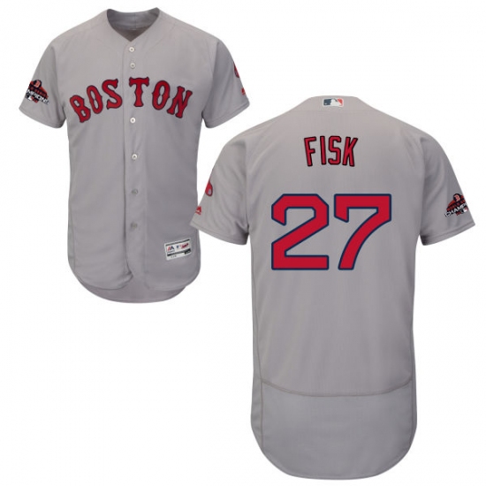 Men's Majestic Boston Red Sox #27 Carlton Fisk Grey Road Flex Base Authentic Collection 2018 World Series Champions MLB Jersey