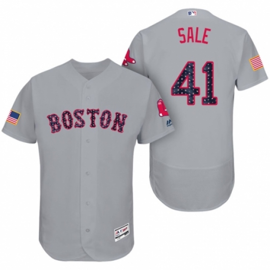 Men's Majestic Boston Red Sox # 41 Chris Sale Grey Stars & Stripes Authentic Collection Flex Base MLB Jersey