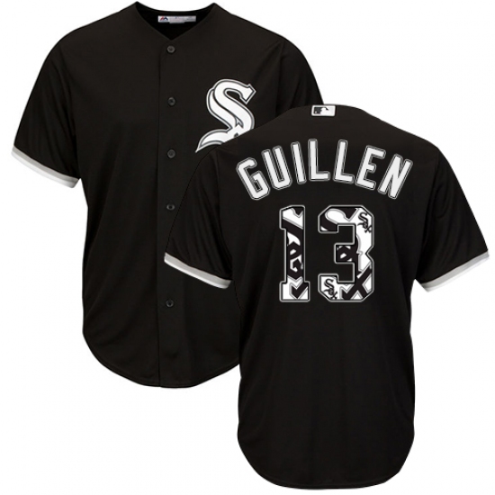Men's Majestic Chicago White Sox #13 Ozzie Guillen Authentic Black Team Logo Fashion Cool Base MLB Jersey