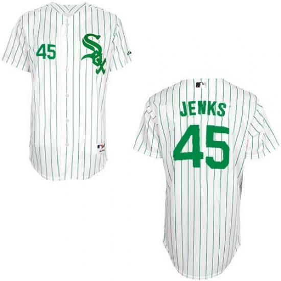 Home>MLB>Chicago White Sox>Bobby Jenks>Men's Majestic Chicago White Sox #45 Bobby Jenks Authentic White/Green Strip MLB Jersey