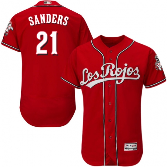 Home>MLB>Cincinnati Reds>Reggie Sanders>Men's Majestic Cincinnati Reds #21 Reggie Sanders Red Los Rojos Flexbase Authentic Collection MLB Jersey