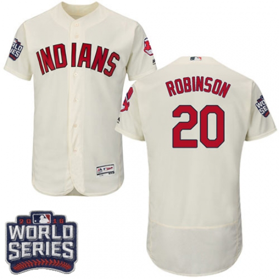 Home>MLB>Cleveland Indians>Eddie Robinson>Men's Majestic Cleveland Indians #20 Eddie Robinson Cream 2016 World Series Bound Flexbase Authentic Collection MLB Jersey