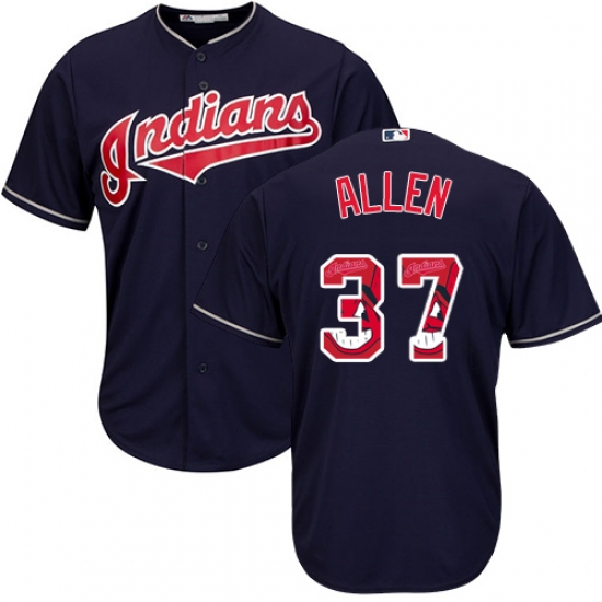 Men's Majestic Cleveland Indians #37 Cody Allen Authentic Navy Blue Team Logo Fashion Cool Base MLB Jersey
