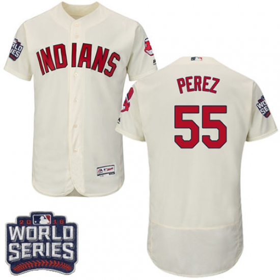 Home>MLB>Cleveland Indians>Roberto Perez>Men's Majestic Cleveland Indians #55 Roberto Perez Cream 2016 World Series Bound Flexbase Authentic Collection MLB Jersey