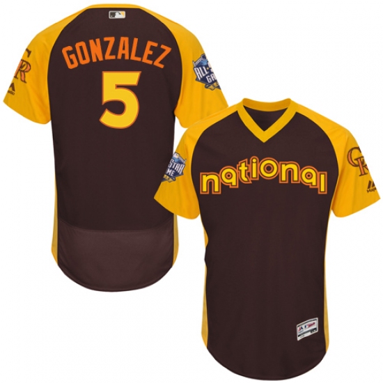 Home>MLB>Colorado Rockies>Carlos Gonzalez>Men's Majestic Colorado Rockies #5 Carlos Gonzalez Brown 2016 All-Star National League BP Authentic Collection Flex Base MLB Jersey