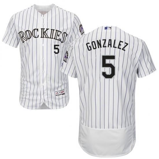 Men's Majestic Colorado Rockies #5 Carlos Gonzalez White Home Flex Base Authentic Collection MLB Jersey