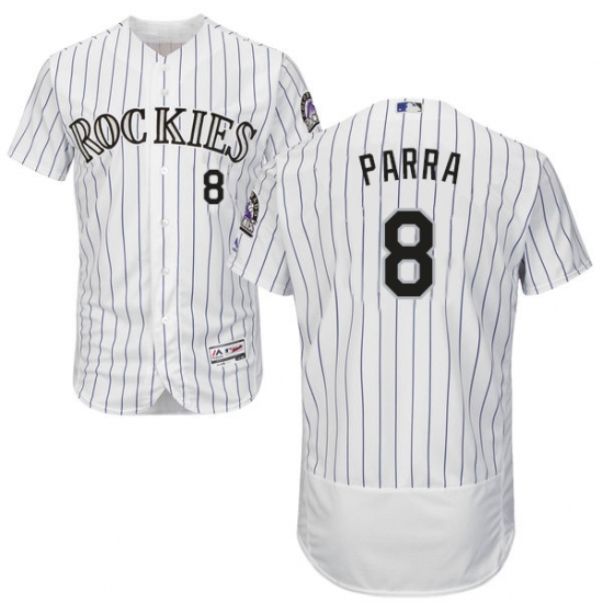 Home>MLB>Colorado Rockies>Gerardo Parra>Men's Majestic Colorado Rockies #8 Gerardo Parra White Home Flex Base Authentic Collection MLB Jersey
