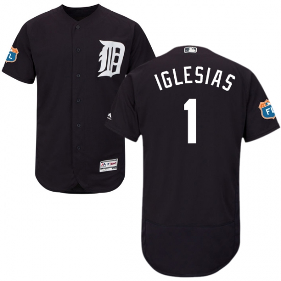 Men's Majestic Detroit Tigers #1 Jose Iglesias Navy Blue Alternate Flex Base Authentic Collection MLB Jersey