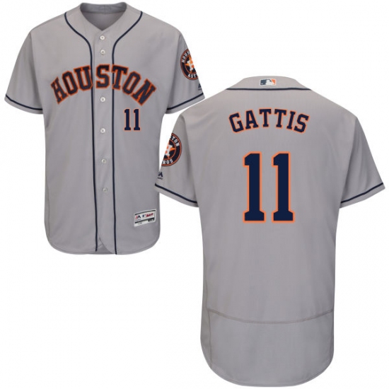 Home>MLB>Houston Astros>Evan Gattis>Men's Majestic Houston Astros #11 Evan Gattis Grey Road Flex Base Authentic Collection MLB Jersey