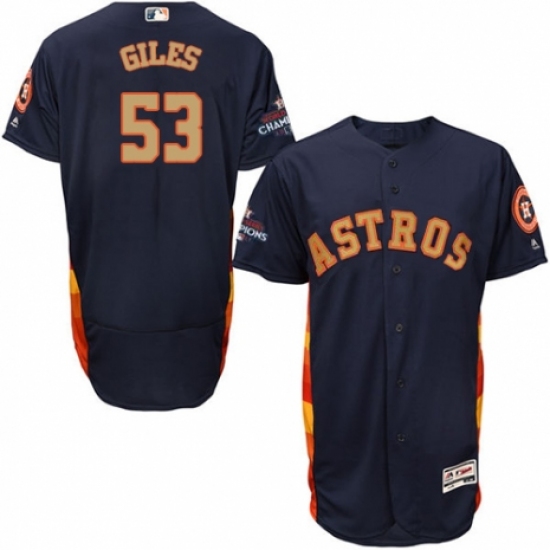 >Men's Majestic Houston Astros #53 Ken Giles Navy Blue Alternate 2018 Gold Program Flex Base Authentic Collection MLB Jersey