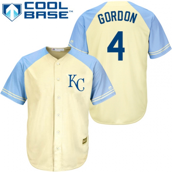 Men's Majestic Kansas City Royals #4 Alex Gordon Authentic Cream Exclusive Vintage Cool Base MLB Jersey