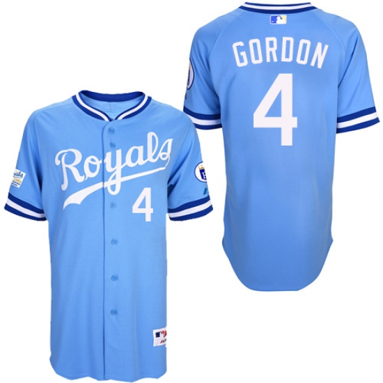 Home>MLB>Kansas City Royals>Alex Gordon>Men's Majestic Kansas City Royals #4 Alex Gordon Replica Light Blue 1985 Turn Back The Clock MLB Jersey