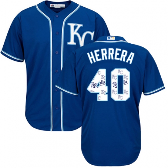 Men's Majestic Kansas City Royals #40 Kelvin Herrera Authentic Blue Team Logo Fashion Cool Base MLB Jersey