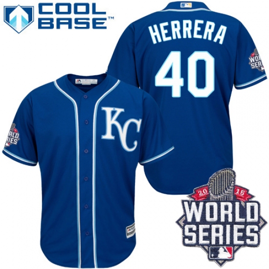 Men's Majestic Kansas City Royals #40 Kelvin Herrera Replica Blue Alternate 2 Cool Base 2015 World Series Patch MLB Jersey
