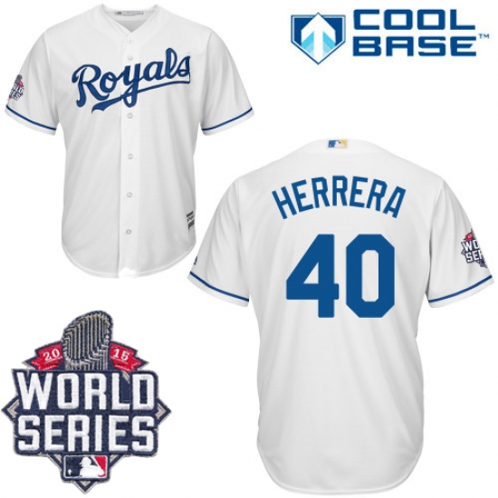 Home>MLB>Kansas City Royals>Kelvin Herrera>Men's Majestic Kansas City Royals #40 Kelvin Herrera Replica White Home Cool Base 2015 World Series Patch MLB Jersey