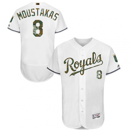 Home>MLB>Kansas City Royals>Mike Moustakas>Men's Majestic Kansas City Royals #8 Mike Moustakas Authentic White 2016 Memorial Day Fashion Flex Base MLB Jersey