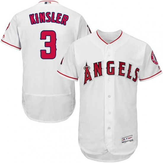 Home>MLB>Los Angeles Angels of Anaheim>Ian Kinsler>Men's Majestic Los Angeles Angels of Anaheim #3 Ian Kinsler White Home Flex Base Authentic Collection MLB Jersey