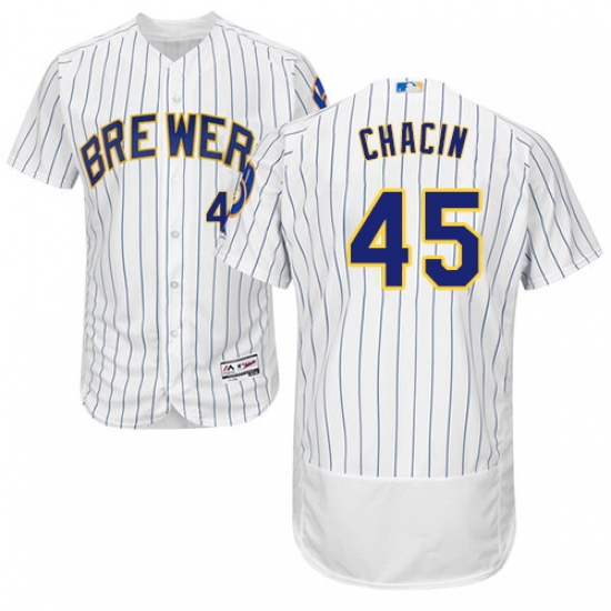 Men's Majestic Milwaukee Brewers #45 Jhoulys Chacin White Alternate Flex Base Authentic Collection MLB Jersey