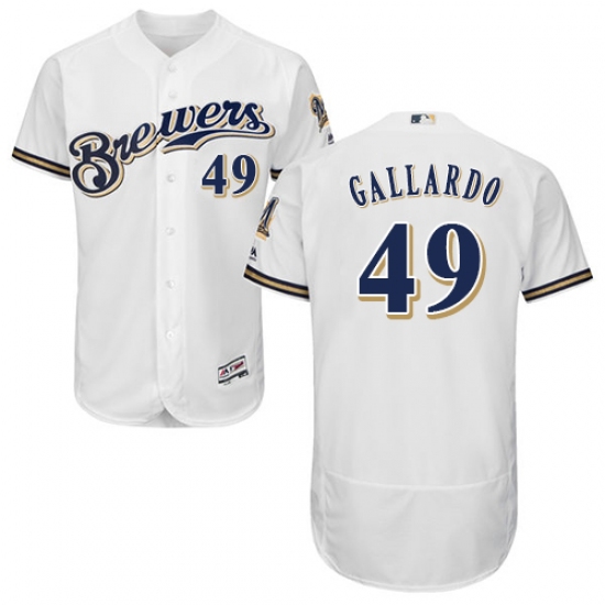 Men's Majestic Milwaukee Brewers #49 Yovani Gallardo White Home Flex Base Authentic Collection MLB Jersey