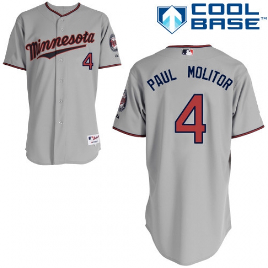 Men's Majestic Minnesota Twins #4 Paul Molitor Authentic Grey Road Cool Base MLB Jersey