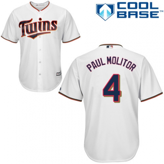 Men's Majestic Minnesota Twins #4 Paul Molitor Replica White Home Cool Base MLB Jersey