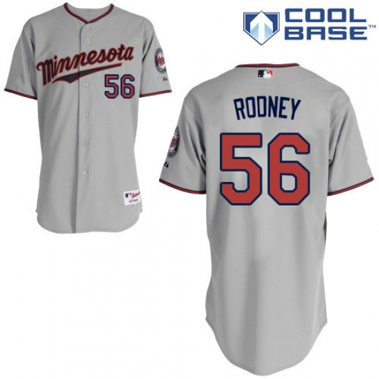 Men's Majestic Minnesota Twins #56 Fernando Rodney Authentic Grey Road Cool Base MLB Jersey