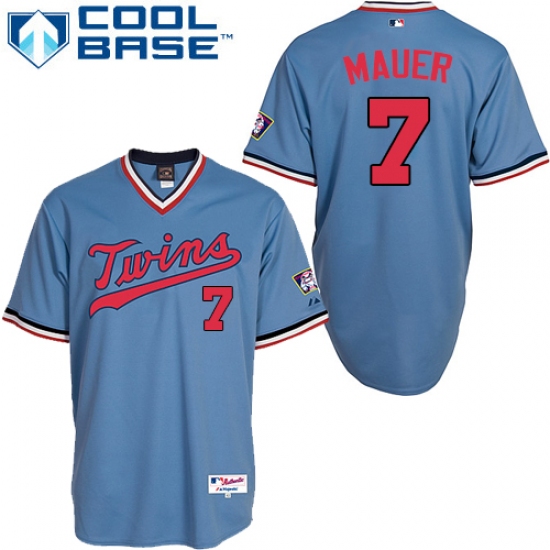 Home>MLB>Minnesota Twins>Joe Mauer>Men's Majestic Minnesota Twins #7 Joe Mauer Authentic Light Blue 1984 Turn Back The Clock MLB Jersey