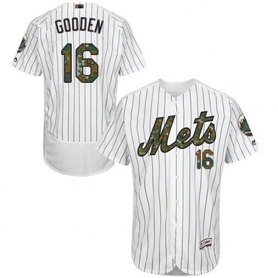 Men's Majestic New York Mets #16 Dwight Gooden Authentic White 2016 Memorial Day Fashion Flex Base MLB Jersey