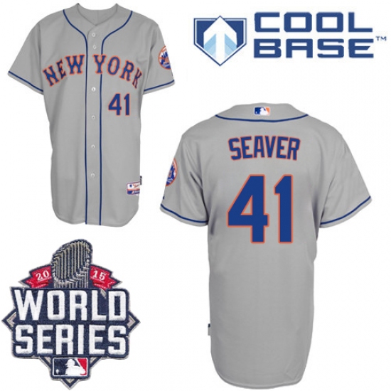 Men's Majestic New York Mets #41 Tom Seaver Replica Grey Road Cool Base 2015 World Series MLB Jersey