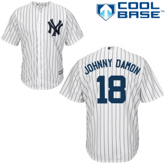 Home>MLB>New York Yankees>Johnny Damon>Men's Majestic New York Yankees #18 Johnny Damon Replica White Home MLB Jersey