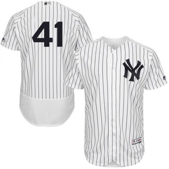 Men's Majestic New York Yankees #41 Randy Johnson White Home Flex Base Authentic Collection MLB Jersey