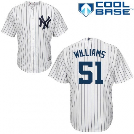 Home>MLB>New York Yankees>Bernie Williams>Men's Majestic New York Yankees #51 Bernie Williams Replica White Home MLB Jersey