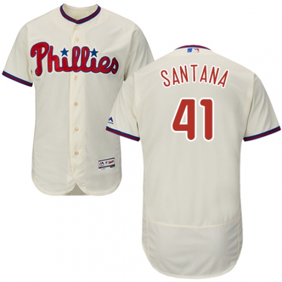 Home>MLB>Philadelphia Phillies>Carlos Santana>Men's Majestic Philadelphia Phillies #41 Carlos Santana Cream Alternate Flex Base Authentic Collection MLB Jersey