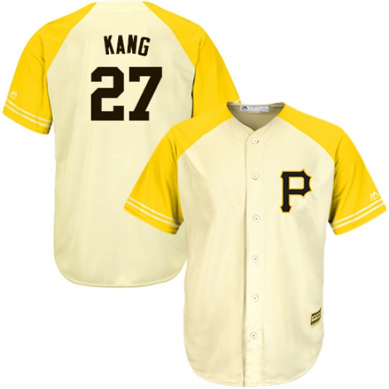 Home>MLB>Pittsburgh Pirates>Jung-ho Kang>Men's Majestic Pittsburgh Pirates #27 Jung-ho Kang Replica Cream/Gold Exclusive MLB Jersey