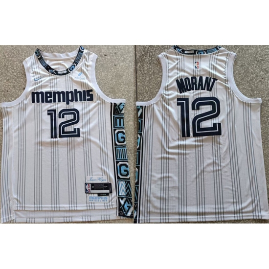 Men's Memphis Grizzlies #12 Ja Morant White 2025-26 City Edition Edition Stitched Basketball Jersey