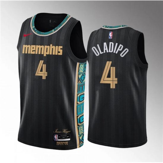 >Men's Memphis Grizzlies #4 Victor Oladipo Black City Edition Stitched Jersey