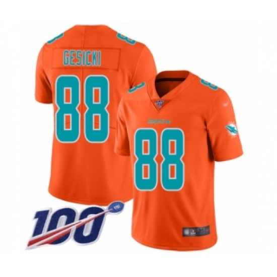 >Men's Miami Dolphins #88 Mike Gesicki Limited Orange Inverted Legend 100th Season Football Jersey