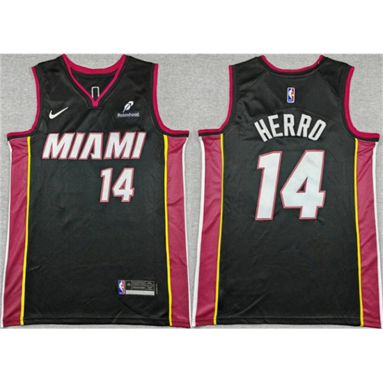 >Men's Miami Heat #14 Tyler Herro Black Icon Edition Stitched Basketball Jersey