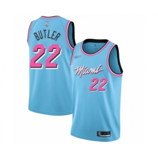 >Men's Miami Heat #22 Jimmy Butler Swingman Blue Basketball Jersey - 2019 20 City Edition