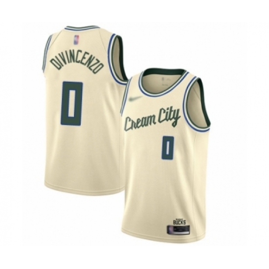 >Men's Milwaukee Bucks #0 Donte DiVincenzo Swingman Cream Basketball Jersey - 2019 20 City Edition